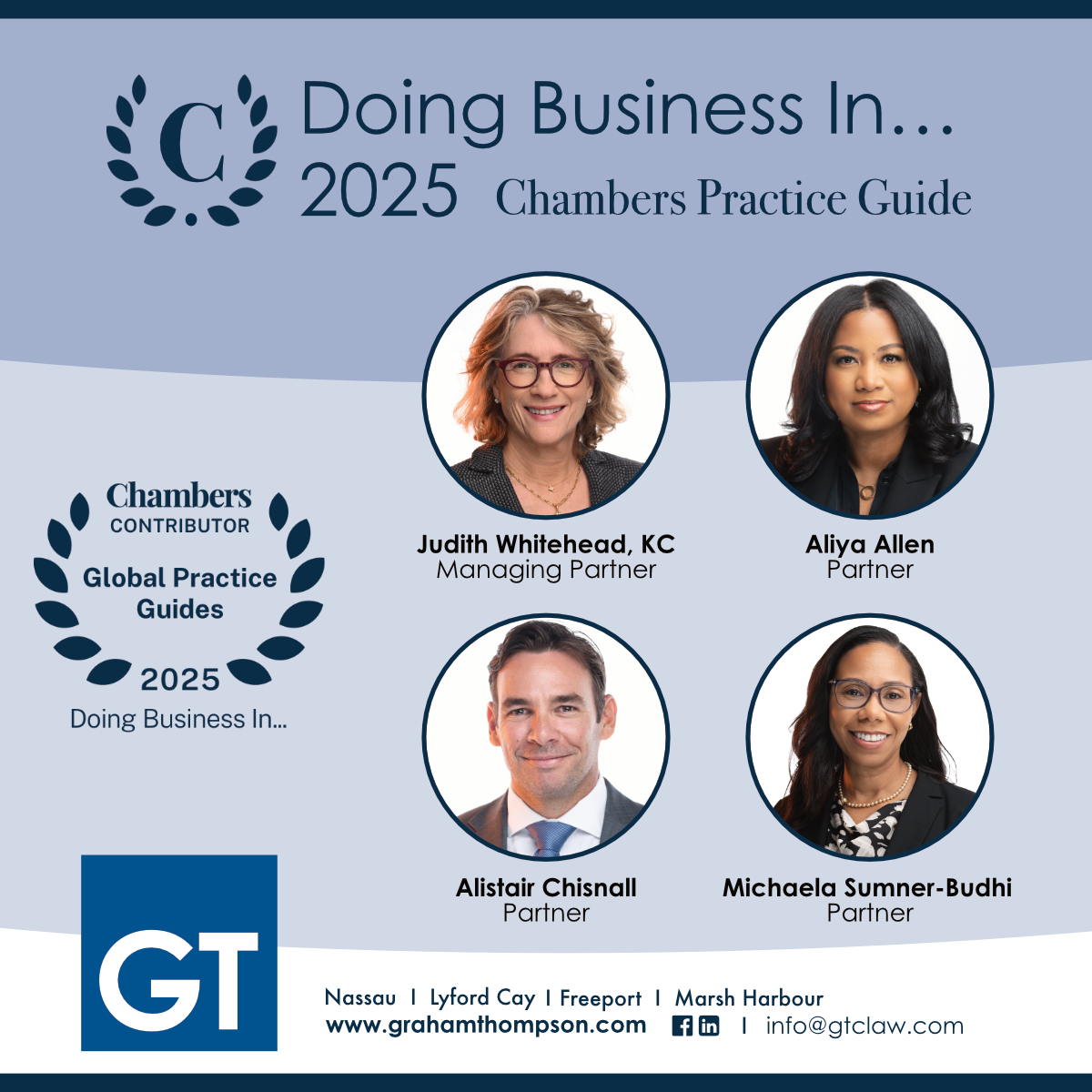 Nassau, The Bahamas. The Bahamas Chapter of the recently released Chambers and Partners 2025 Doing Business in… Practice Guide, was co-authored by GrahamThompson Managing Partner, Judy Whitehead, KC and Partners Aliya Allen, Alistair Chisnall and Michaela Sumner-Budhi. The Chapter also includes, some of the latest trends and developments.